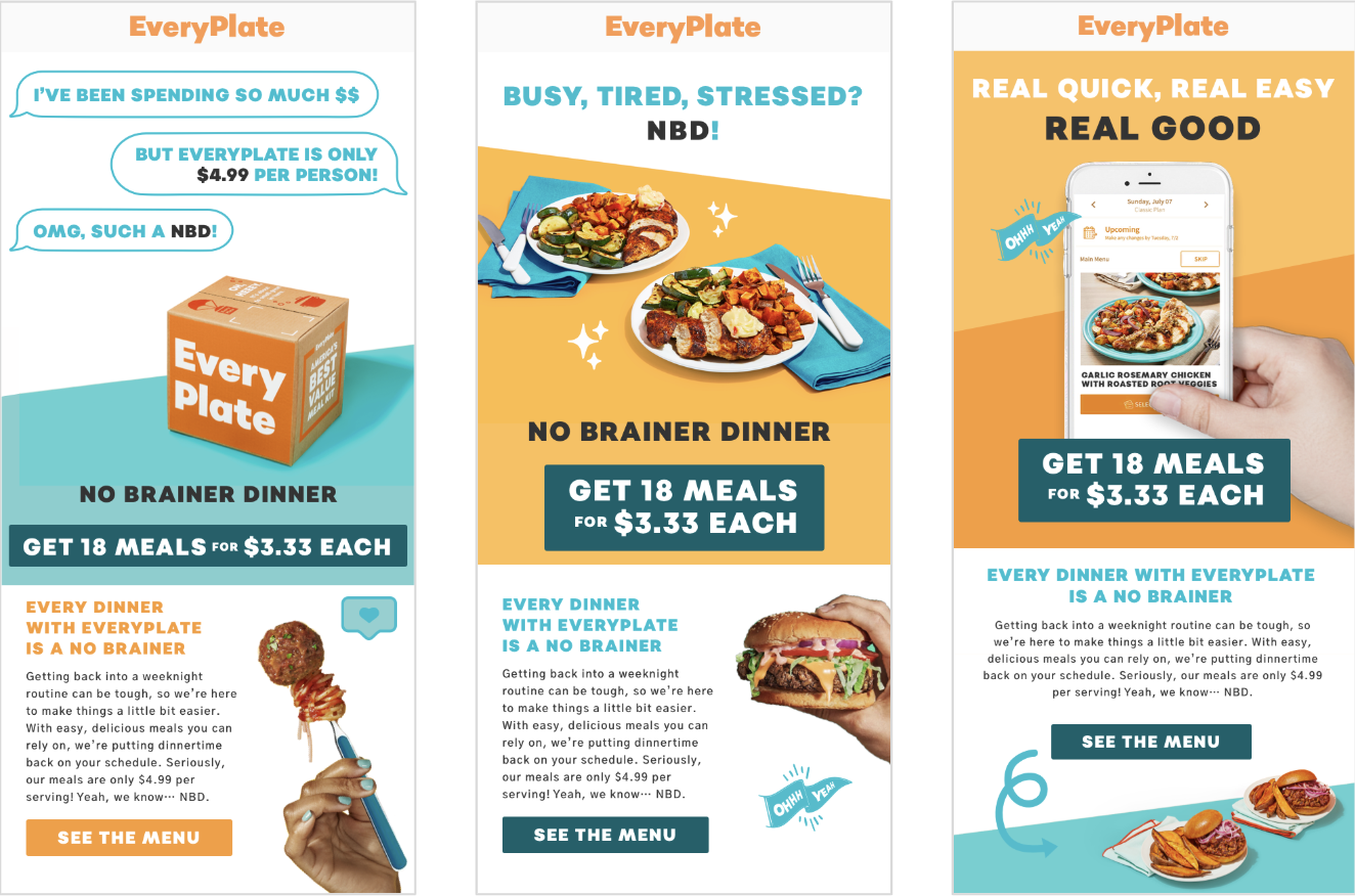 As back-to-school season approaches, we all need help finding a better way to get back into a weeknight routine. Between morning meetings, appointments, sports practices, and decoding your kids’ text messages—how are you supposed to even think about dinner? That’s where EveryPlate comes in and takes dinner off your to-do list, like it’s NBD. With easy, affordable, and delicious meals you can rely on, you can go ahead and cross off that grocery store trip and last-minute recipe search. We’re putting dinnertime back on the schedule. Trust us, it’s NBD (No Brainer Dinner).